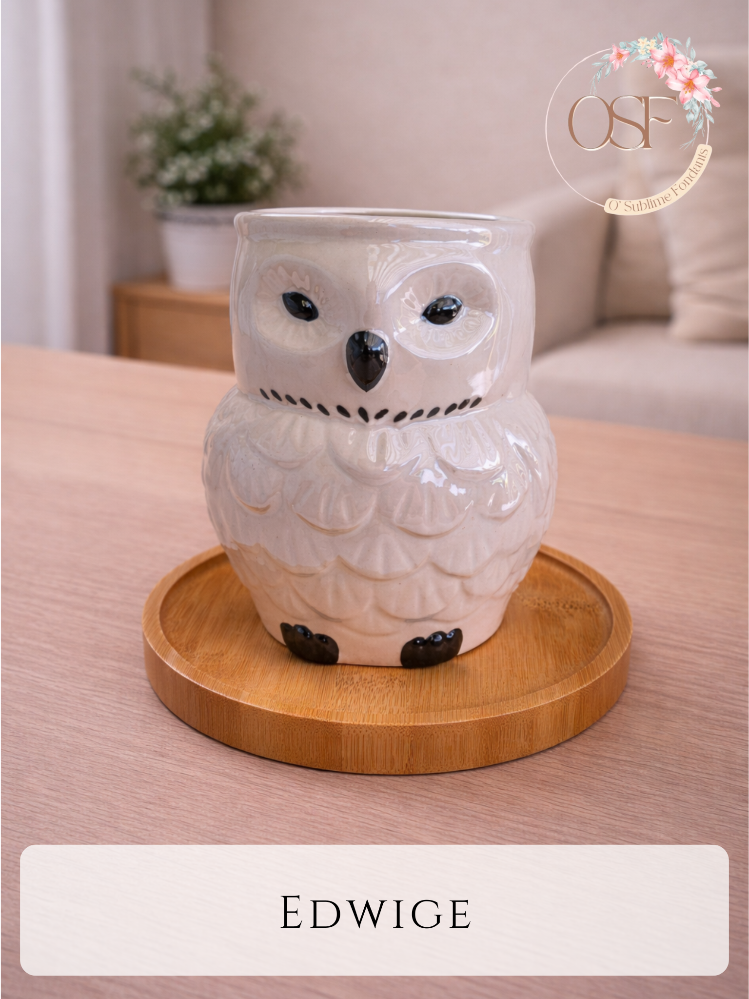 Ce magnifique brûleur unique en son genre, en forme de hibou, arbore une glaçure irisée